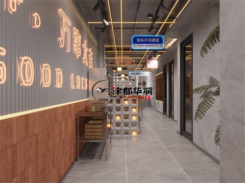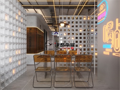 今天分享的是銀川餐廳裝修設(shè)計方案鑒賞,快節(jié)奏的日子里,用餐不僅是滿足口腹之欲,更是尋一處靜雅,覓一點閑情的生活美學。背景墻由水泥灰磚堆砌而成內(nèi)加燈帶使得整個空間不那么冰冷,起到點綴空間的作用。桌椅以鐵藝為主,鐵制品勾勒出硬朗的空間線條,金屬元素的添加產(chǎn)生獨特的冰冷質(zhì)感,現(xiàn)代簡潔的設(shè)計依舊吸睛。不同色調(diào)的灰色搭配加上暖色調(diào)的點綴,使整個空間穩(wěn)重的同時又洋溢著的趣味。墻上的燈光讓整空間更有趣味性,沉浸在這個空間中讓人慵懶放松,給人一舒適的就餐體驗。本次餐廳設(shè)計突出現(xiàn)代、高效、簡潔的特點,在設(shè)計環(huán)節(jié)中,我們將設(shè)計注入更多的人性需求元素,采用現(xiàn)代人機學理念布局,保證人體充分活動的基礎(chǔ)上,合理利用空間。