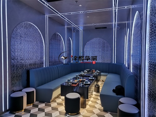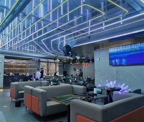 今天分享的是銀川鼎龍餐廳設(shè)計裝修項目實景鑒賞,該項目以“未來感與時尚感深度融合”為設(shè)計核心,致力于打造一個兼具餐飲與娛樂功能的沉浸式空間。在視覺設(shè)計上,空間大量運用霓虹光源與幾何元素,例如墻面環(huán)繞的環(huán)形燈帶、立體幾何裝飾結(jié)構(gòu),并以高對比度的黑白主色調(diào)為基底,成功營造出極具賽博朋克風(fēng)格的前衛(wèi)氛圍,精準(zhǔn)匹配年輕消費群體對潮流社交空間的需求。功能布局上,該餐廳巧妙融合KTV包廂的休閑屬性與傳統(tǒng)餐廳的用餐功能,采用卡座與餐桌一體化的設(shè)計方案,在保障用餐便捷性的同時,充分滿足消費者的社交娛樂需求。銀川裝修公司津都華麗團隊在本次項目中,深度踐行潮流沉浸式餐飲空間的設(shè)計理念。